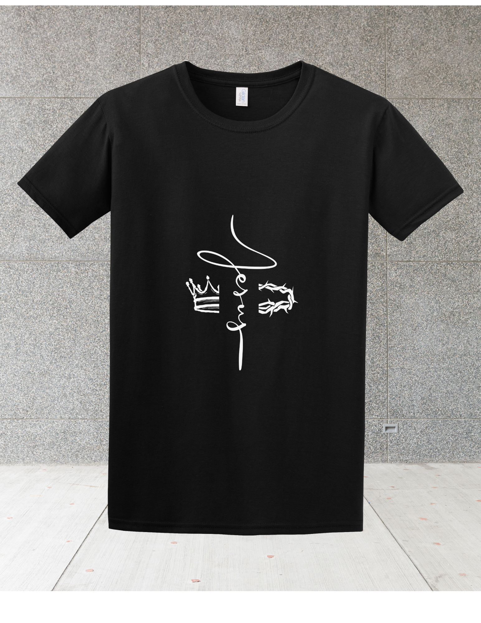 From thorns to the throne, Jesus did both. This powerful design features both crowns inter-sectioning at the cross, anchored by Hebrews 2:9...Because of God's gift of undeserved grace, Jesus died for everyone. And now that Jesus has suffered and died, He is crowned with glory and honor! It's a resurrection reminder that suffering isn't the end-glory follows. Humbled low. Crowned high.